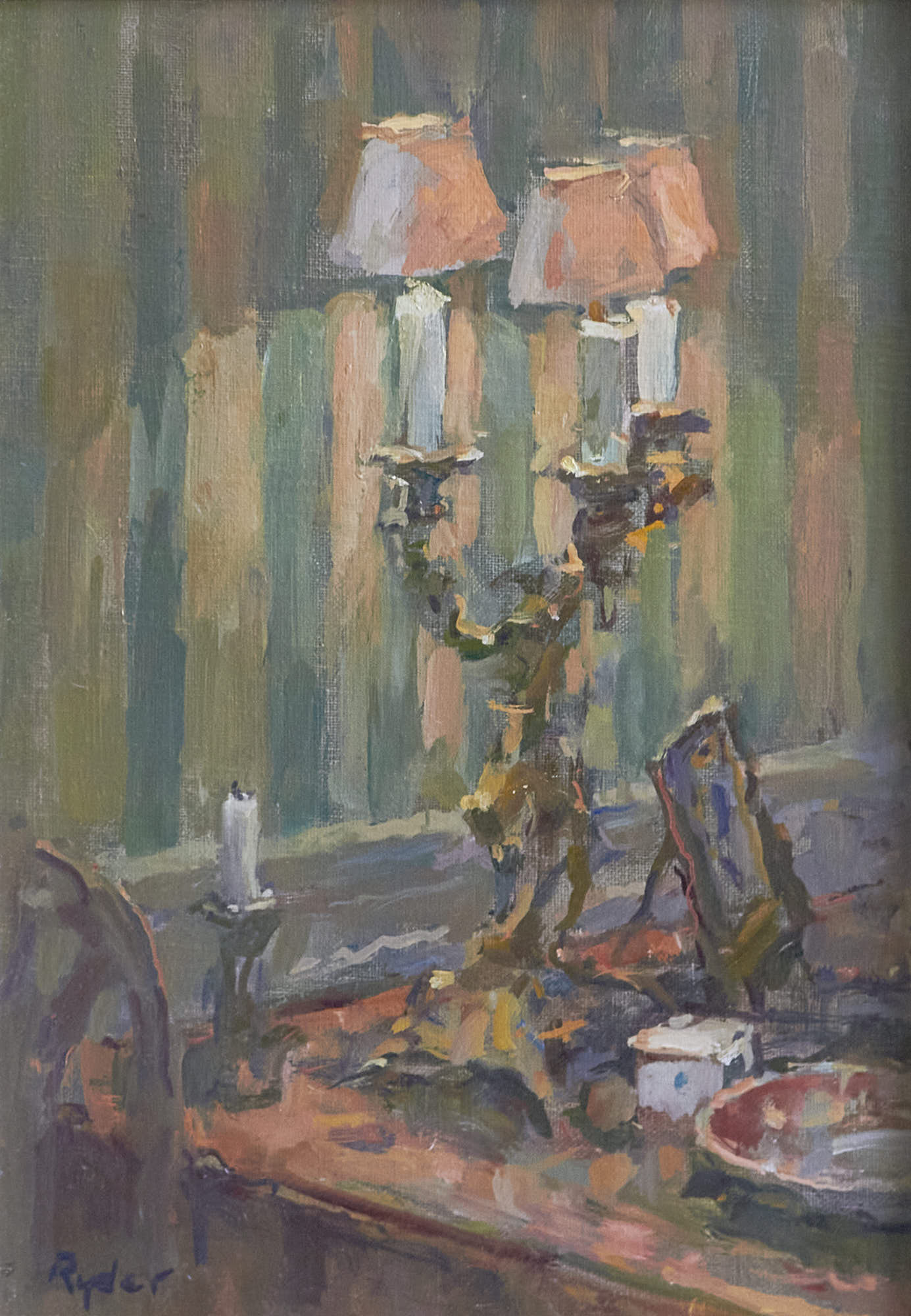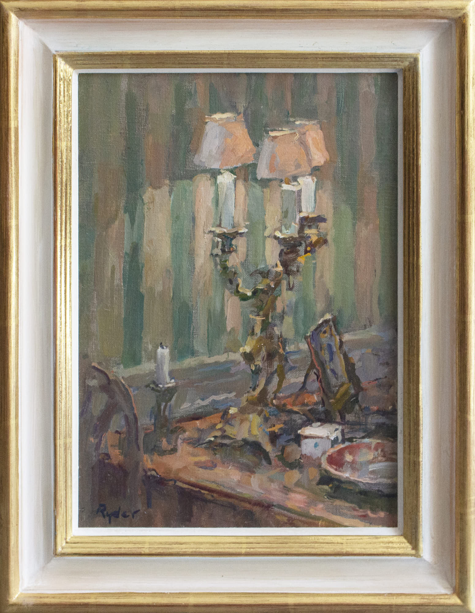 Sue began painting professionally at an early age. Encouraged by her father, Robert Ryder VC, an enthusiastic amateur painter who imbued his daughter with a similar passion, she entered the prestigious Byam Shaw School of Art. There, her tutor, Bernard Dunstan, introduced her to the work of the post- impressionist Edouard Vuillard, whose gentle scenes of intimate interiors, domestic spaces and gardens in soft blurred colours proved a significant influence on her painting style and choice of subject for the rest of her career. Sue was only 18, and still a student, when she first exhibited at the Royal Academy. She married shortly after, spending the next decade juggling the demands of her career with that of her young family, painting both interiors and portraits.