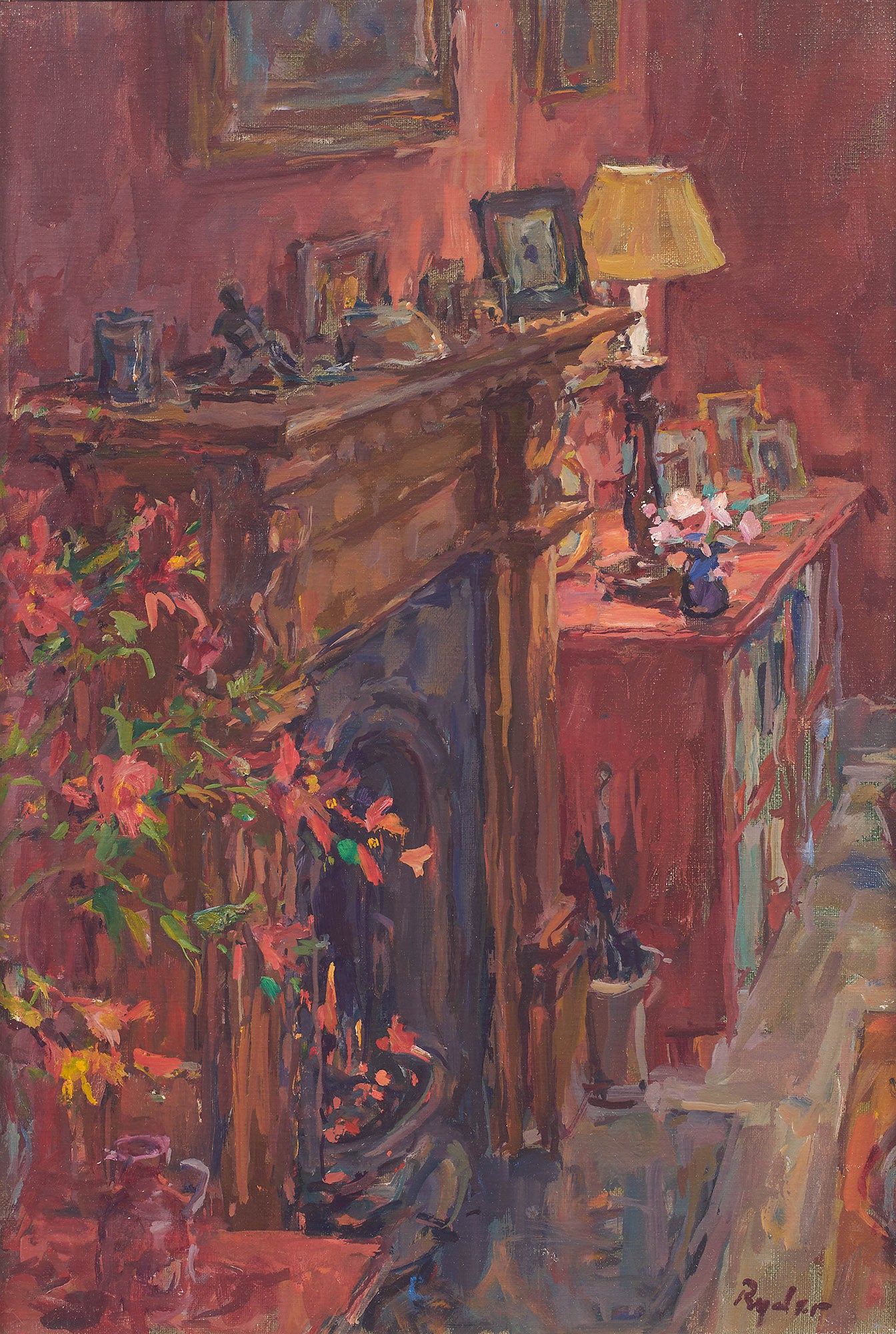 Sue began painting professionally at an early age. Encouraged by her father, Robert Ryder VC, an enthusiastic amateur painter who imbued his daughter with a similar passion, she entered the prestigious Byam Shaw School of Art. There, her tutor, Bernard Dunstan, introduced her to the work of the post- impressionist Edouard Vuillard, whose gentle scenes of intimate interiors, domestic spaces and gardens in soft blurred colours proved a significant influence on her painting style and choice of subject for the rest of her career. Sue was only 18, and still a student, when she first exhibited at the Royal Academy. She married shortly after, spending the next decade juggling the demands of her career with that of her young family, painting both interiors and portraits.