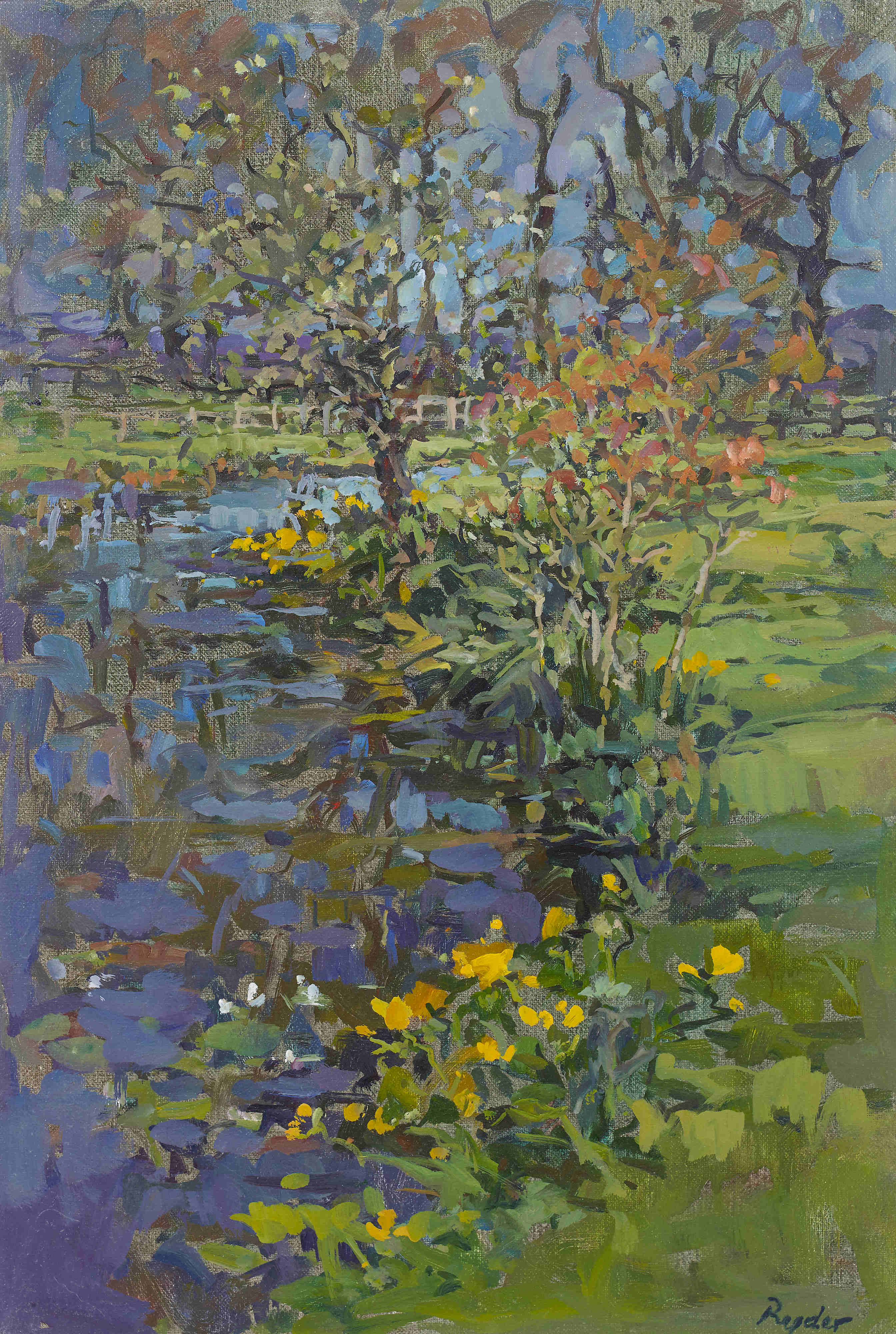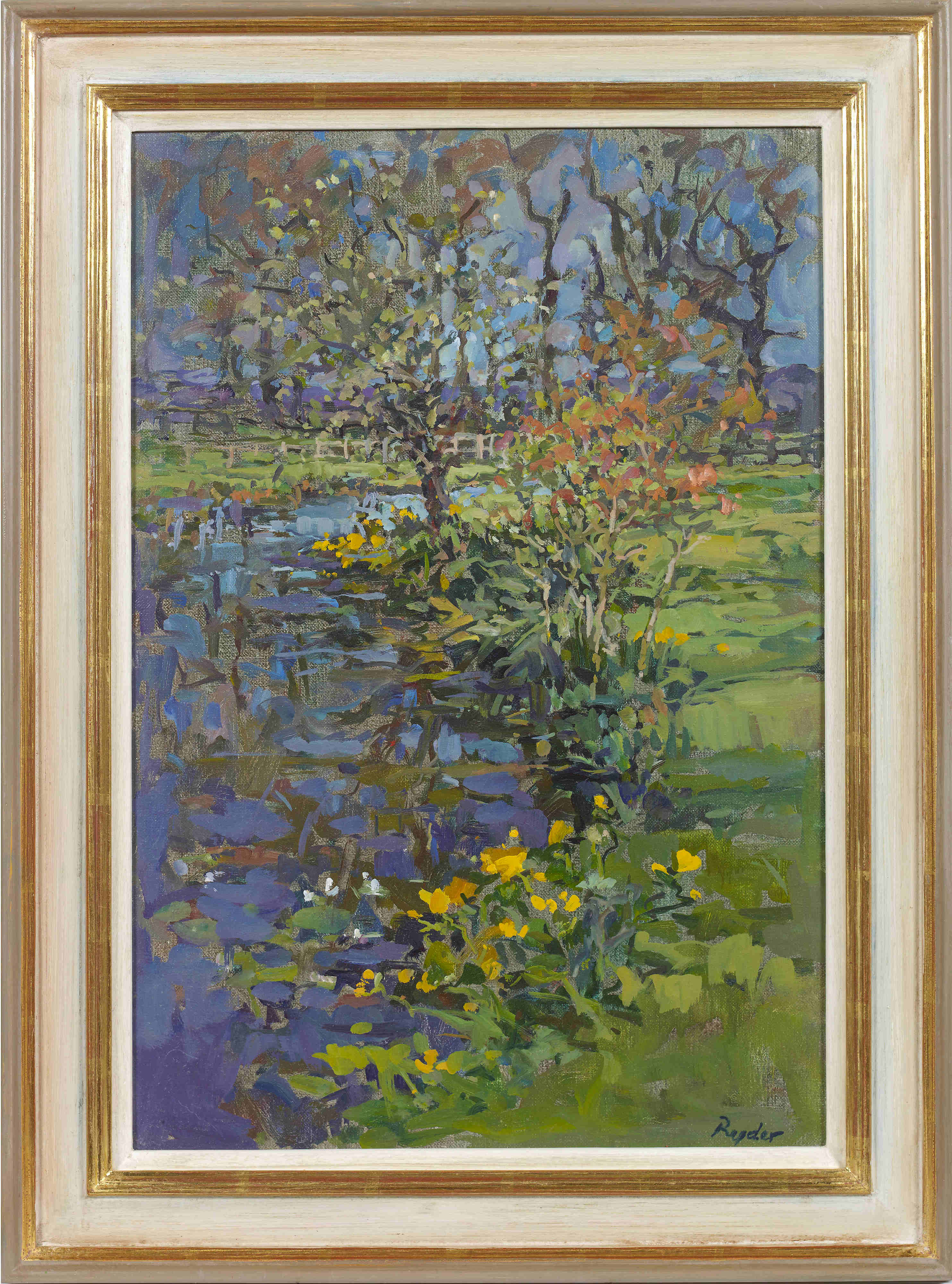 Sue began painting professionally at an early age. Encouraged by her father, Robert Ryder VC, an enthusiastic amateur painter who imbued his daughter with a similar passion, she entered the prestigious Byam Shaw School of Art. There, her tutor, Bernard Dunstan, introduced her to the work of the post- impressionist Edouard Vuillard, whose gentle scenes of intimate interiors, domestic spaces and gardens in soft blurred colours proved a significant influence on her painting style and choice of subject for the rest of her career. Sue was only 18, and still a student, when she first exhibited at the Royal Academy. She married shortly after, spending the next decade juggling the demands of her career with that of her young family, painting both interiors and portraits.