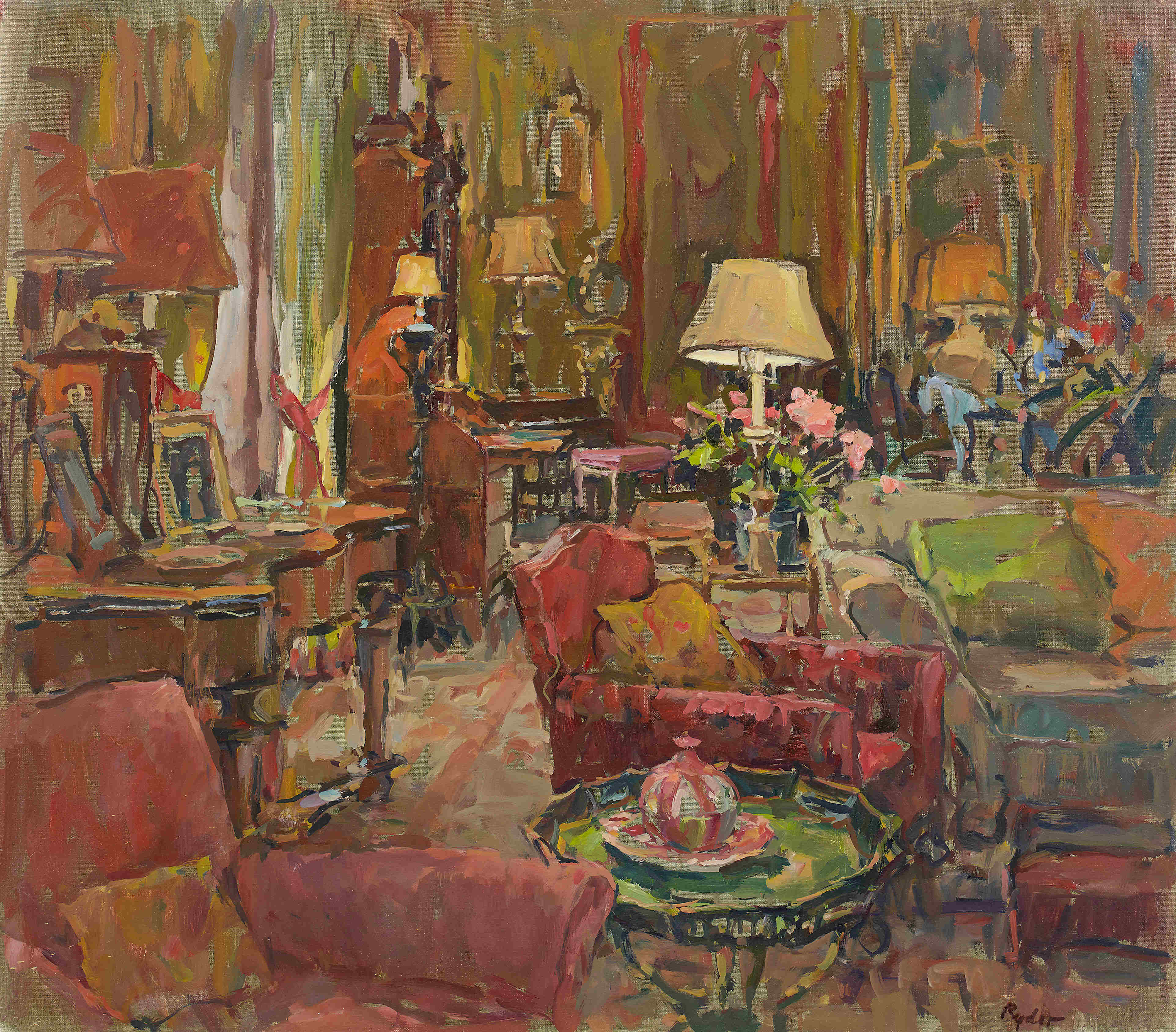 Sue’s work away from portraiture has proved even more successful, to the extent that the name Susan Ryder now conjures up images of the glorious interiors and sunlit terraces for which she is so well known. She occupies a place amongst the great names of contemporary British Impressionism as represented by the New English Art Club – a society of like-minded artists that can trace its philosophical roots from John Singer Sargent and Augustus John, through Stanley Spencer, to the present day and now includes Ken Howard, Tom Coates, Fred Cuming and Jane Corsellis. As a leading proponent of the New English style, Sue’s paintings remain in constant demand despite the ascendency of conceptualism in the current market and other passing trends. Her regular solo exhibitions in London invariably sell out, fuelling an increasingly strong secondary market – an indication of the sustained interest and appreciation of her work.