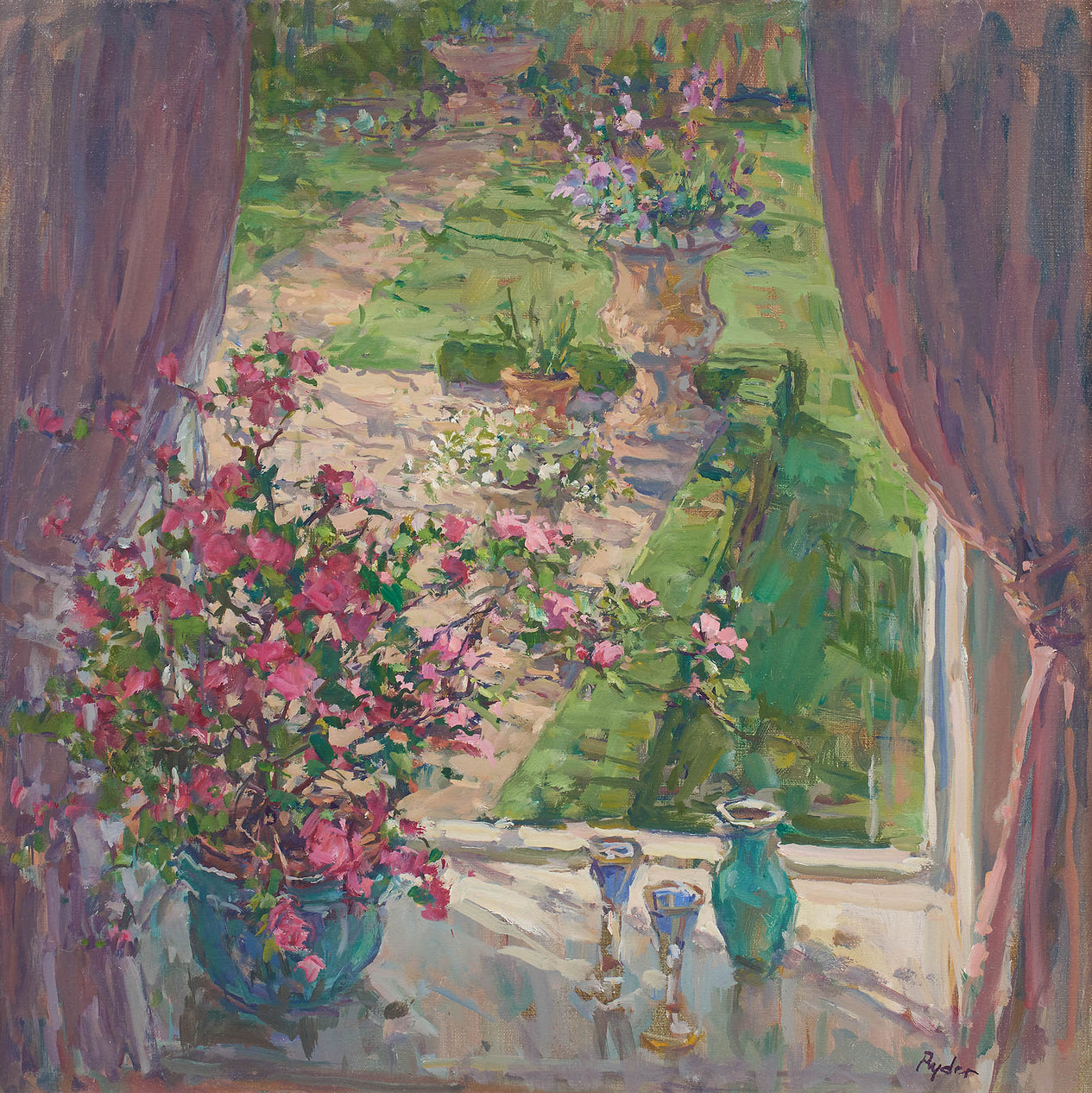 Sue’s work away from portraiture has proved even more successful, to the extent that the name Susan Ryder now conjures up images of the glorious interiors and sunlit terraces for which she is so well known. She occupies a place amongst the great names of contemporary British Impressionism as represented by the New English Art Club – a society of like-minded artists that can trace its philosophical roots from John Singer Sargent and Augustus John, through Stanley Spencer, to the present day and now includes Ken Howard, Tom Coates, Fred Cuming and Jane Corsellis. As a leading proponent of the New English style, Sue’s paintings remain in constant demand despite the ascendency of conceptualism in the current market and other passing trends. Her regular solo exhibitions in London invariably sell out, fuelling an increasingly strong secondary market – an indication of the sustained interest and appreciation of her work.