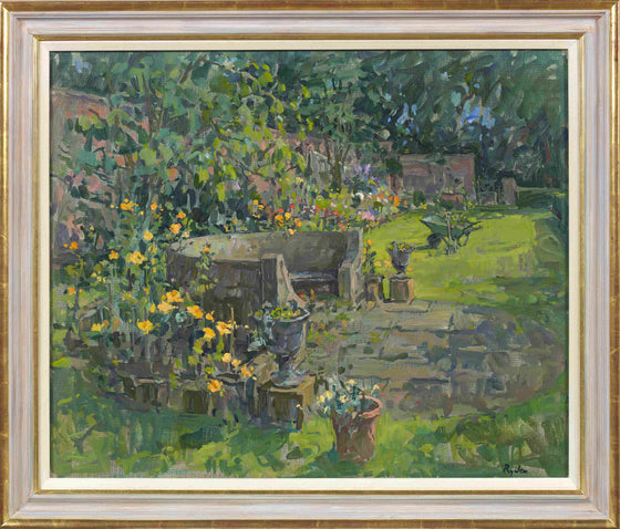 Sue began painting professionally at an early age. Encouraged by her father, Robert Ryder VC, an enthusiastic amateur painter who imbued his daughter with a similar passion, she entered the prestigious Byam Shaw School of Art. There, her tutor, Bernard Dunstan, introduced her to the work of the post- impressionist Edouard Vuillard, whose gentle scenes of intimate interiors, domestic spaces and gardens in soft blurred colours proved a significant influence on her painting style and choice of subject for the rest of her career. Sue was only 18, and still a student, when she first exhibited at the Royal Academy. She married shortly after, spending the next decade juggling the demands of her career with that of her young family, painting both interiors and portraits.