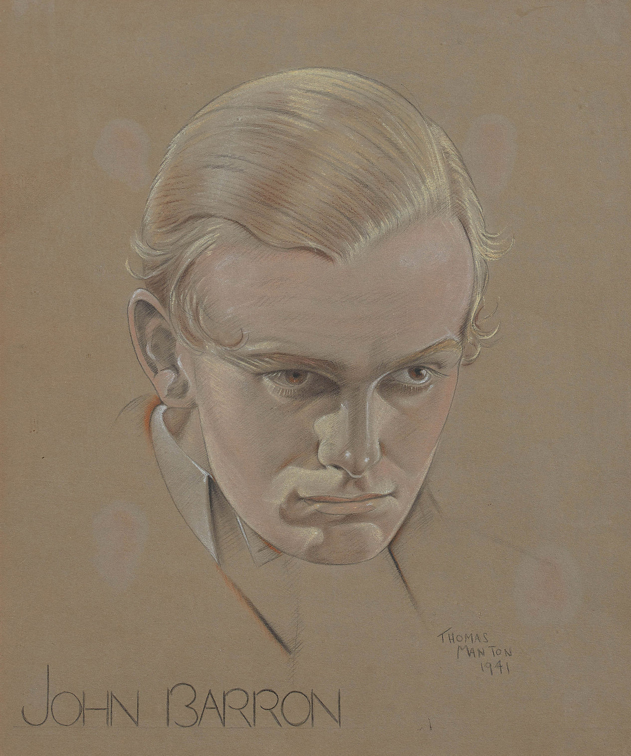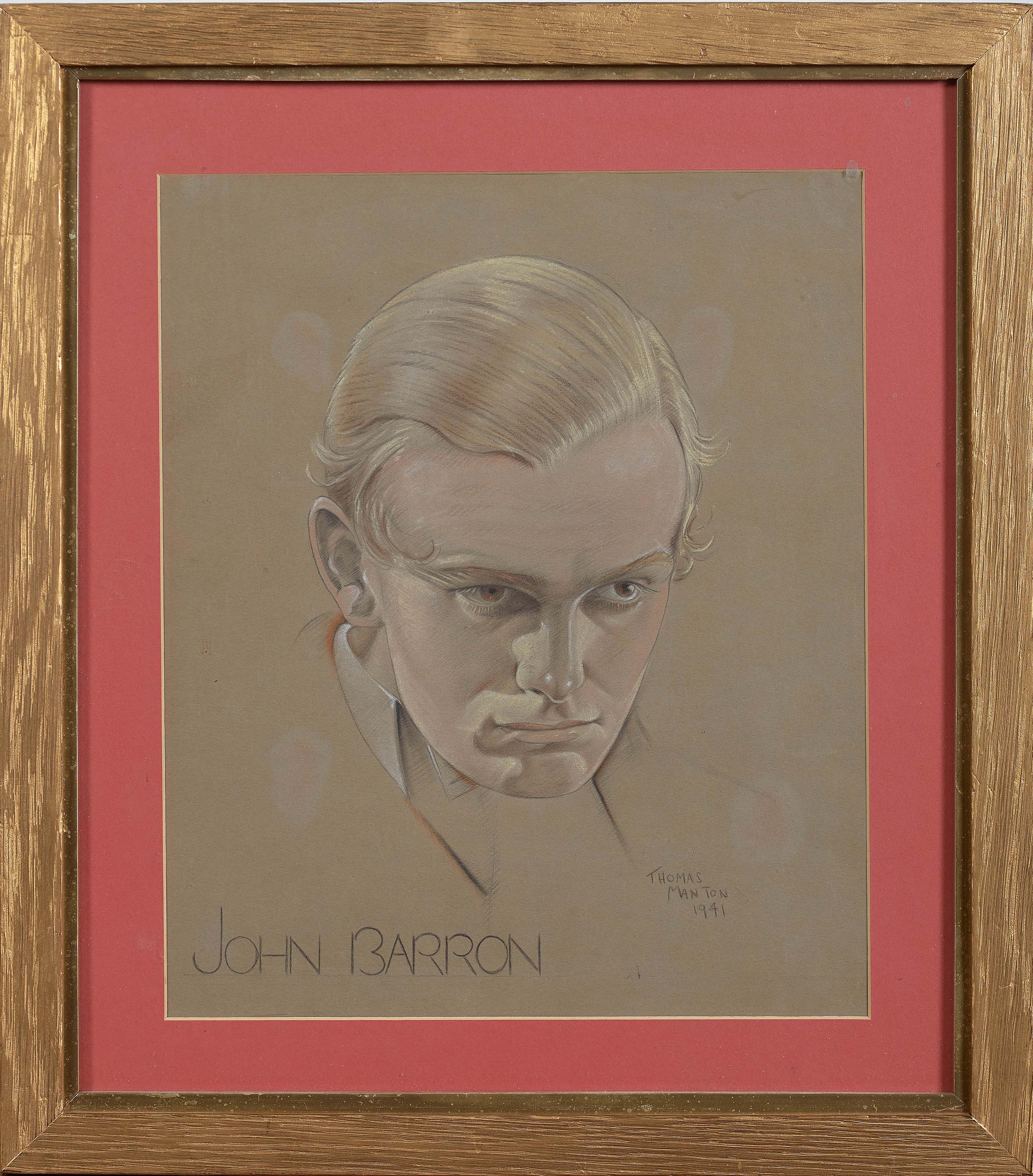 The subject is the English character actor John Barron (1920-2004) depicted at the tender age of 21 so perhaps it was a present. He found a new generation of admirers in the 1970s, through his role in the BBC TV Series The Fall and Rise of Reginald Perrin. As Leonard Rossiter’s boss CJ, he made the line “I didn’t get where I am today by . . .” a catch phrase repeated by men of a certain generation over and again, up and down the country. Pure nostalgia.