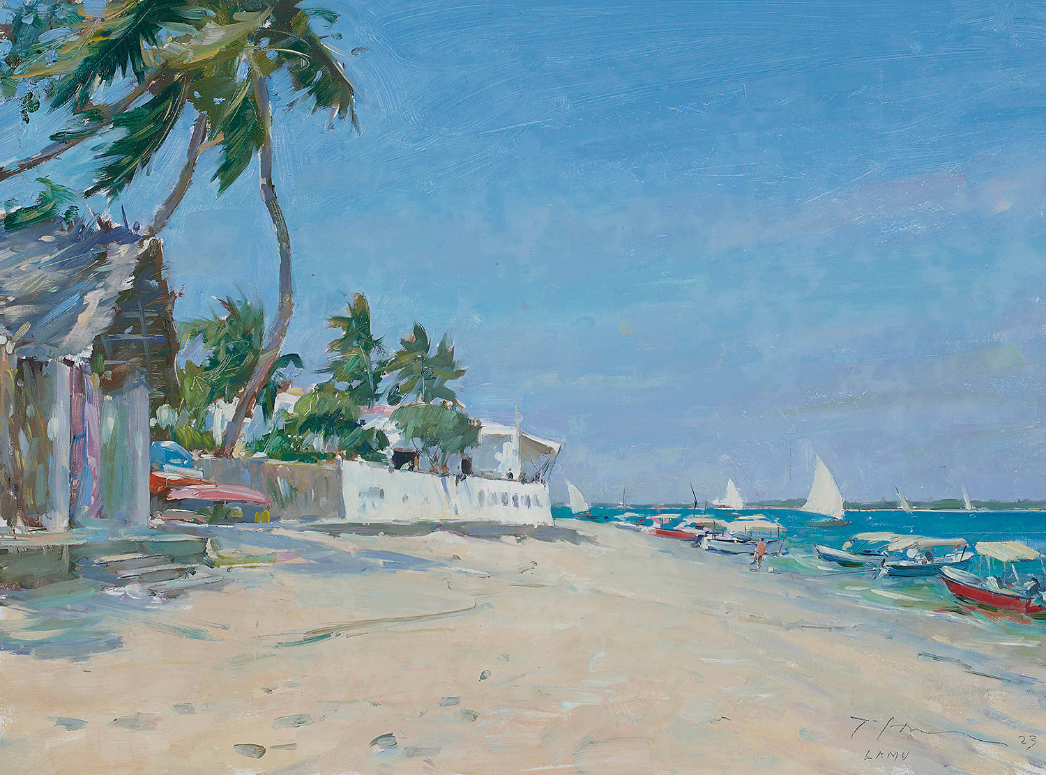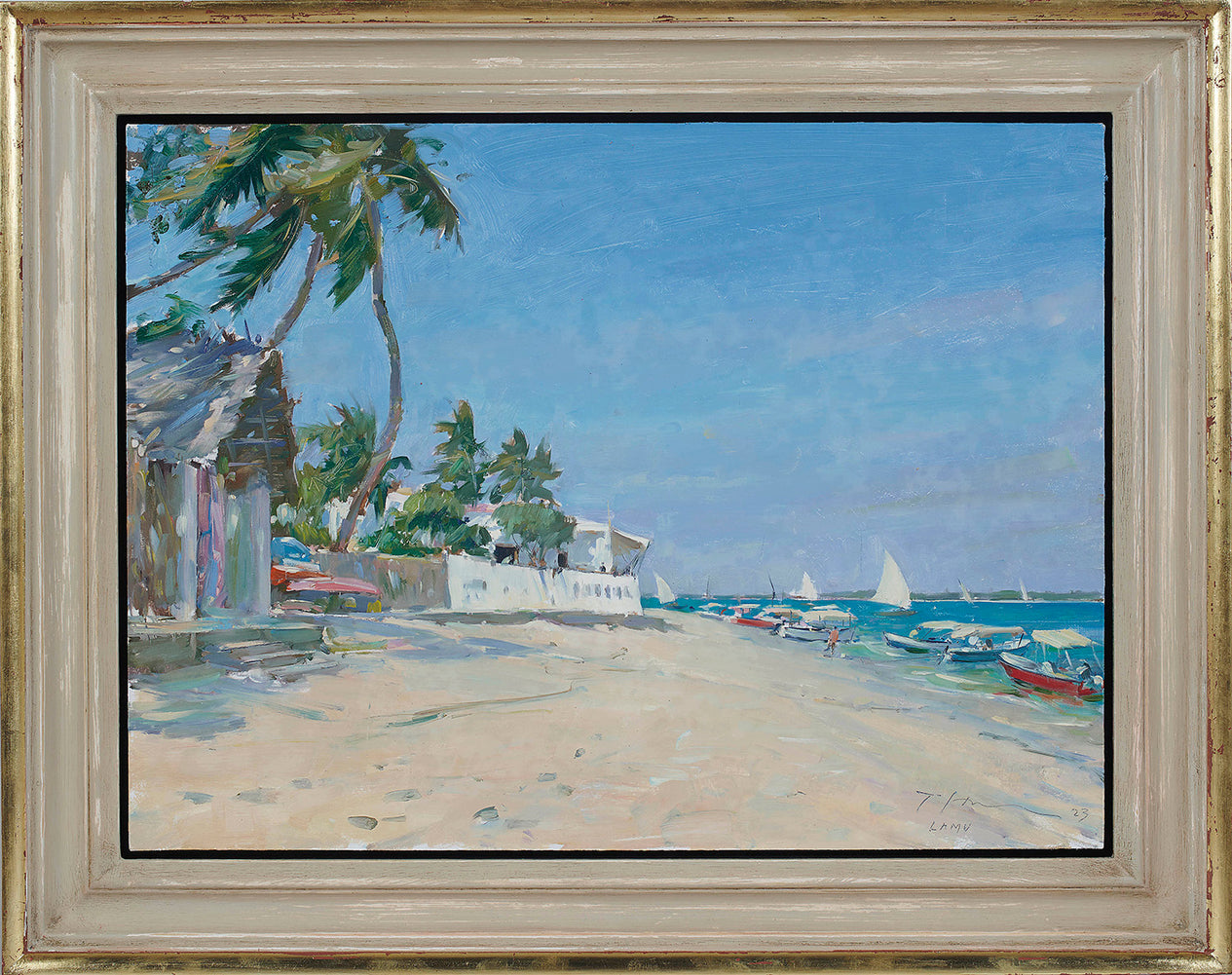 Tom comes from a long line of professional painters. His architect grandfather designed Gatwick’s first terminal whilst moonlighting as a prolific cartoonist for Punch and his father John is a respected professional watercolourist with an international following. With such an artistic heritage it is no surprise that Tom and two of his six brothers are also artists. Tom took a degree in history of art and has taken life classes at the Royal Academy but otherwise had no formal artistic training. He clearly has a natural ability and manifest technical ability, honed by years of continued application and practise.