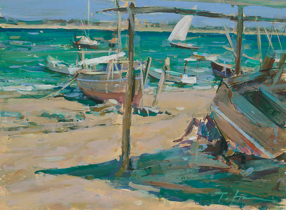 Tom comes from a long line of professional painters. His architect grandfather designed Gatwick’s first terminal whilst moonlighting as a prolific cartoonist for Punch and his father John is a respected professional watercolourist with an international following. With such an artistic heritage it is no surprise that Tom and two of his six brothers are also artists. Tom took a degree in history of art and has taken life classes at the Royal Academy but otherwise had no formal artistic training. He clearly has a natural ability and manifest technical ability, honed by years of continued application and practise.