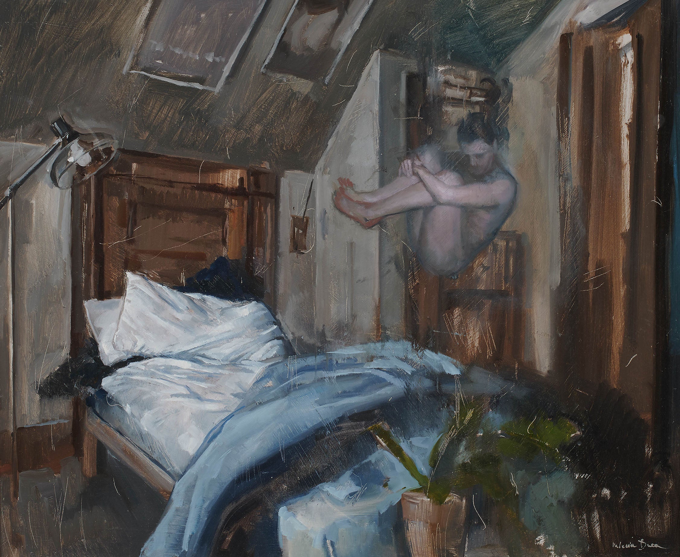 A young artist, Valeria is a rising star in the international figurative painting scene. Her works define the human condition through edgy, technically superb and often humorous self-portraits. Her recent collection of paintings is a deeply relatable account of one young woman’s frustrations during our lockdown global house arrest. A narrative depicting, if not a descent into madness, then at least a blurring of the edges of normality, at times flirting with the surreal.