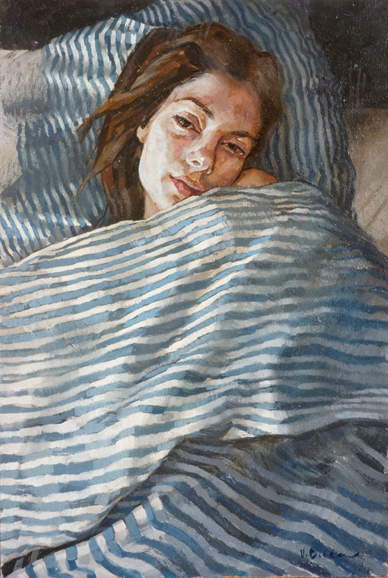 A young artist, Valeria is a rising star in the international figurative painting scene. Her works define the human condition through edgy, technically superb and often humorous self-portraits. Her recent collection of paintings is a deeply relatable account of one young woman’s frustrations during our lockdown global house arrest. A narrative depicting, if not a descent into madness, then at least a blurring of the edges of normality, at times flirting with the surreal.