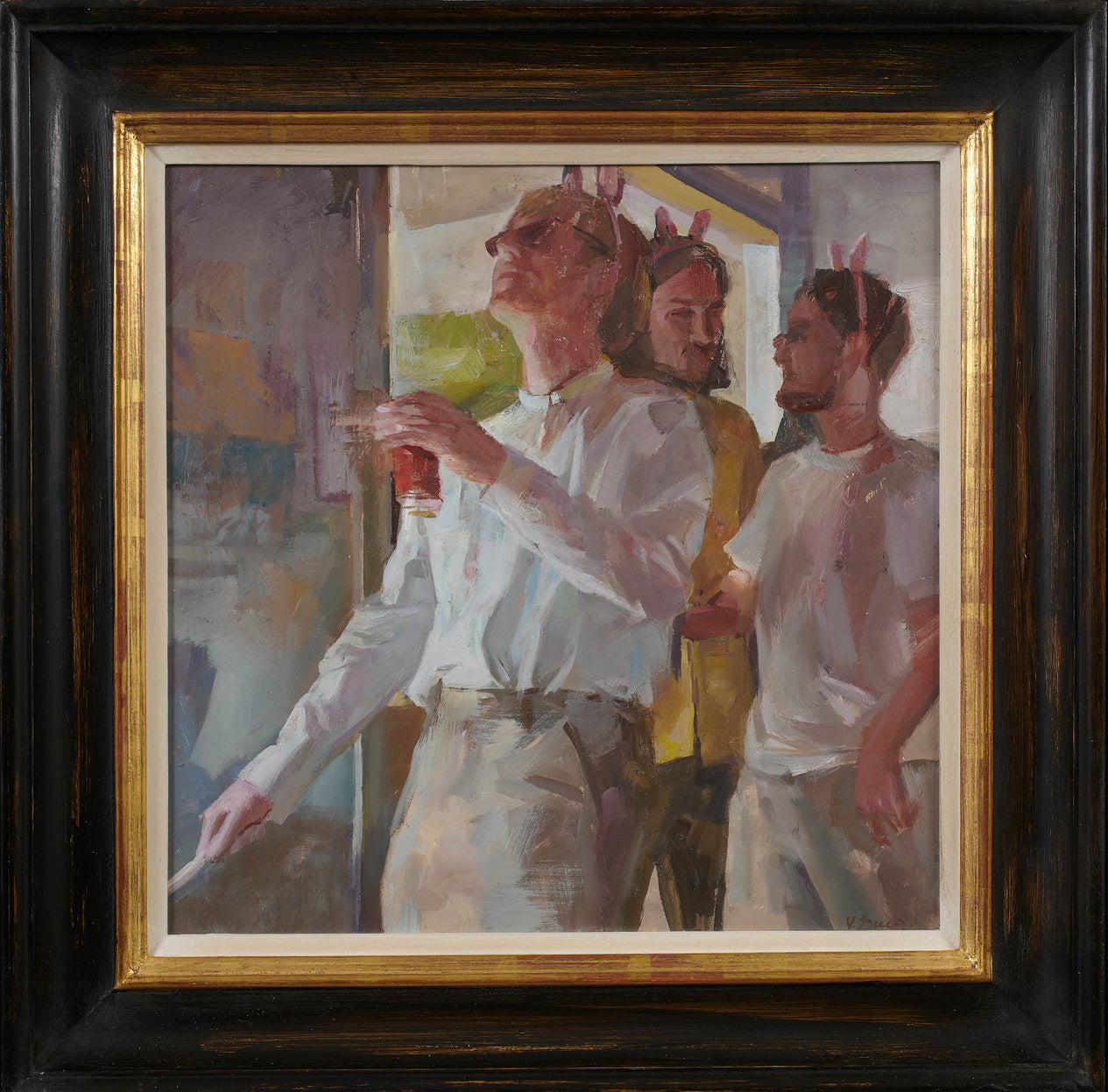 A young artist, Valeria is a rising star in the international figurative painting scene. Her works define the human condition through edgy, technically superb and often humorous self-portraits. Her recent collection of paintings is a deeply relatable account of one young woman’s frustrations during our lockdown global house arrest. A narrative depicting, if not a descent into madness, then at least a blurring of the edges of normality, at times flirting with the surreal.