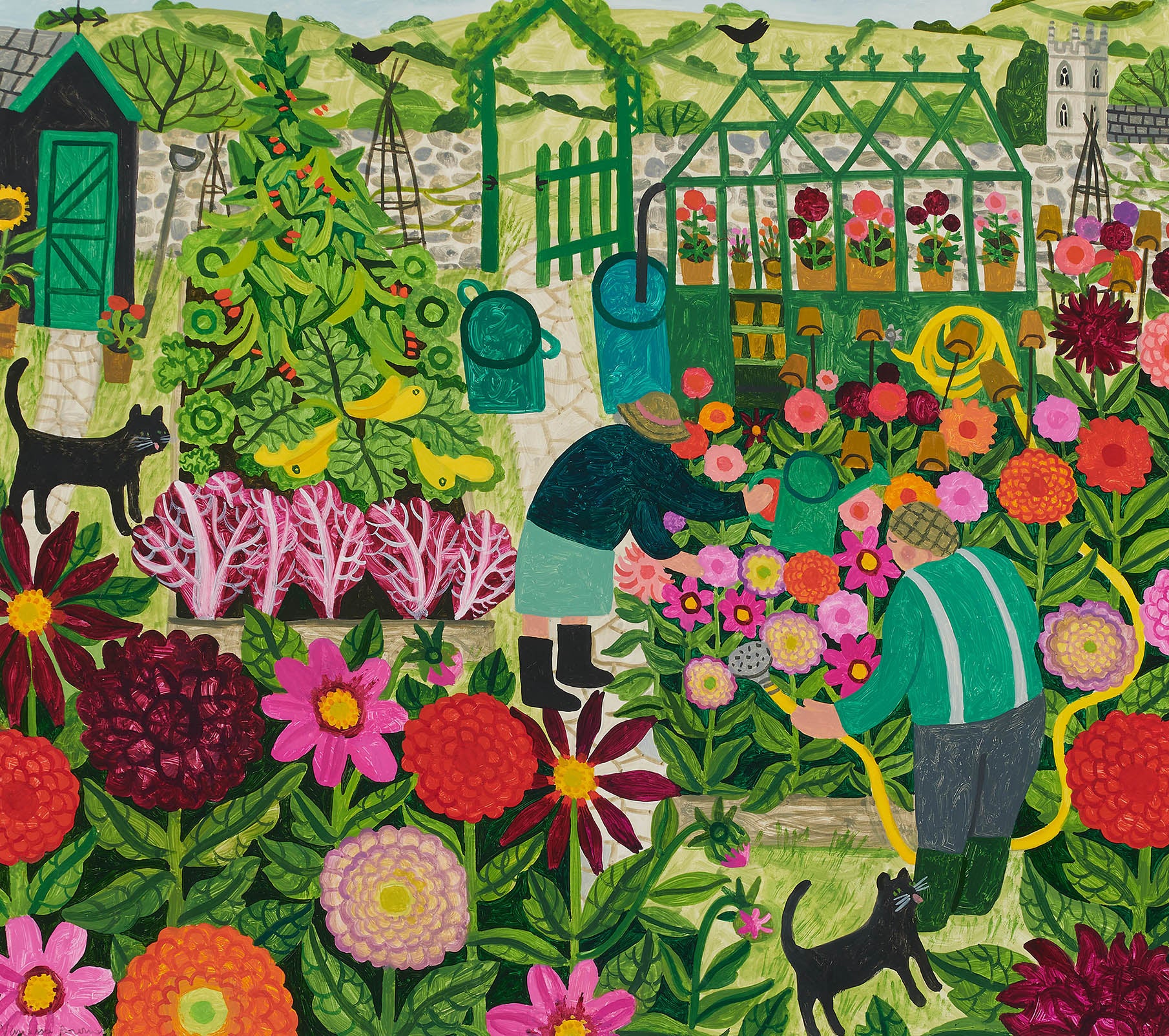 Similarly her landscapes observe the pattern and texture of the countryside around her home. She paints features left by the working of the land, punctuated by seasonal land marks - such as skeletons of trees in winter or hedgerow flowers in summer. Detailed foregrounds of vibrantly coloured berries or hips, delicate snowdrops or cow parsley lead the eye into an intimate portrait of the Dorset landscape.