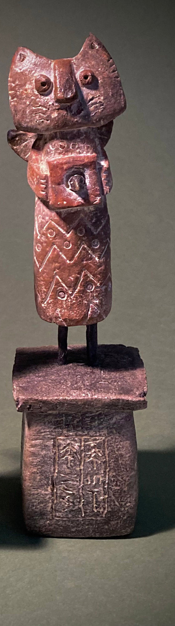 Inspired by an interest in folk art, religious and tribal art along and a good dash of whimsy he allows other influences, including the physical nature of the clay and his background in illustration to enter the creative mix.
