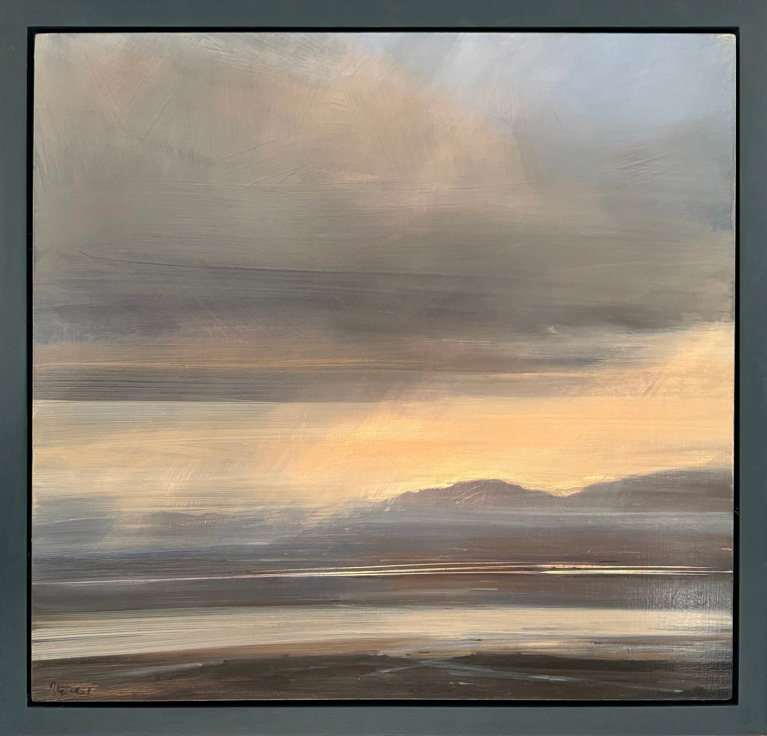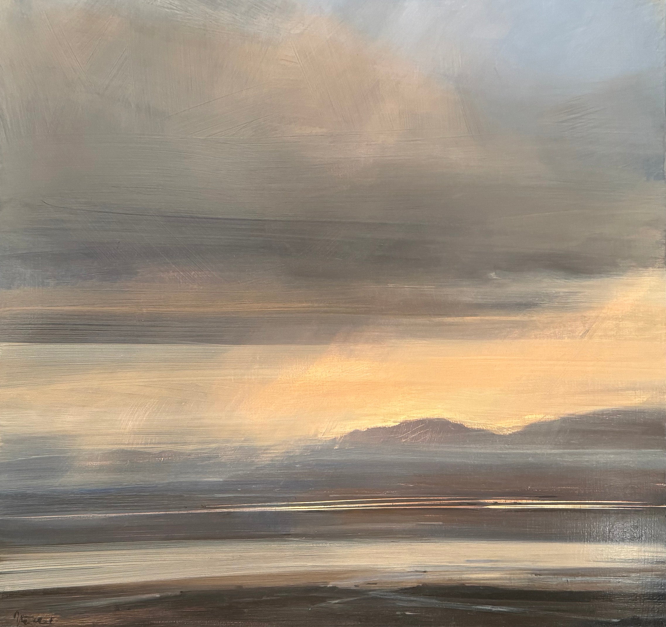 Zarina Stewart-Clark is predominantly a landscape painter, working in egg tempera on traditional gesso ground and more recently in oils.  She is concerned primarily with the fall of light and darkness in landscape, the evocation of place and the spirituality of our landscape.  Her Dutch and Scottish ancestry has inspired her approach to painting. She is particularly influenced by the Dutch 17th Century landscape painters.  Her travels across Scotland and Suffolk remain her greatest inspiration where the changing light and great skies are so integral to her work.